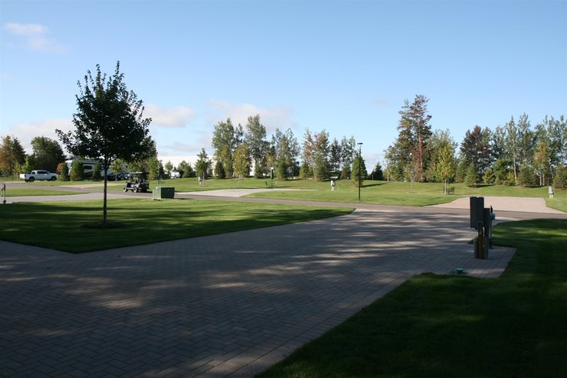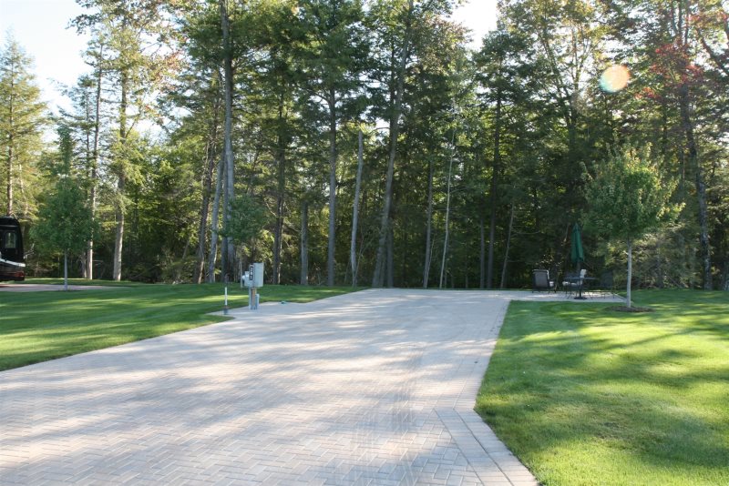This is Standard lot facing small stream. Extra Large “L” Shaped pull-in lot. Brick paved parking areas with handsome boarder and large patio featuring Bistro style tables and chairs. These are simple yet very stylish. This lot features the latest WIFI capabilities, perfect for working or studying from the comforts of the motorcoach or patio area.
