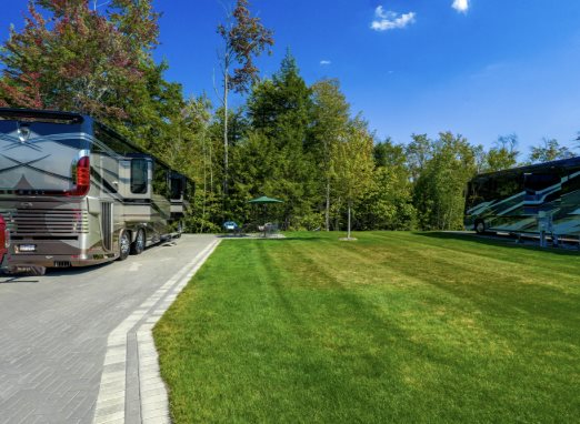 New addition for 2023! This is Standard lot facing small stream and stands of hardwood and cedar trees. Extra Large 75 foot RV pad - pull-in lot. Brick paved parking areas with handsome boarder and large patio featuring Bistro style tables and chairs. These are simple yet very stylish. This lot features the latest WIFI capabilities, perfect for working, studying or planning your next adventure from the comforts of the motorcoach or patio area.